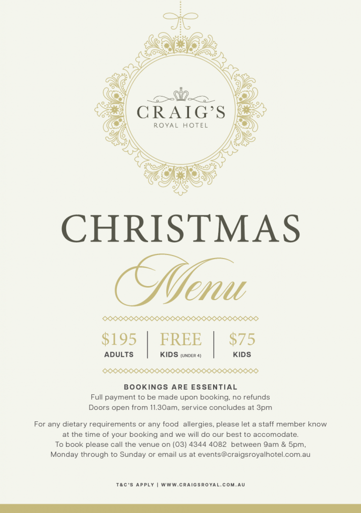 Contact us for your next function or wedding at Craig’s Royal Hotel.